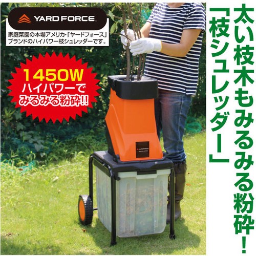 庭木の剪定で出た大量の枝木も、1450Wのハイパワーで細かなチップに早変わり!